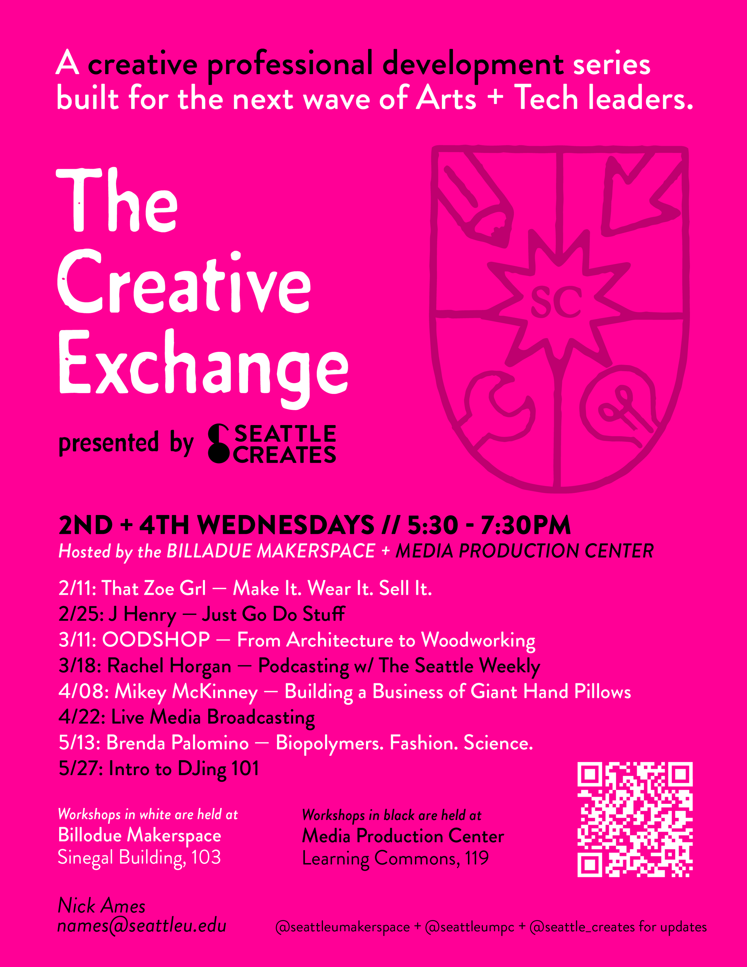 *These workshops are currently open to Seattle University students — but if you're interested in attending as a guest, reach out to us and we'll do our best to make it happen.
